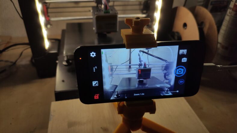 Bei mir versuche ich mit dem Stativ und einem alten Handy Zeitrafferaufnahmen von meinem 3D Drucker zu machen.